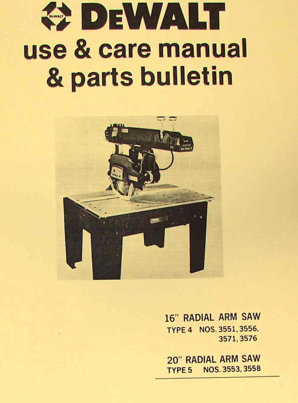 The links below lead to images and the pdf text of dewalt radial arm saws in .